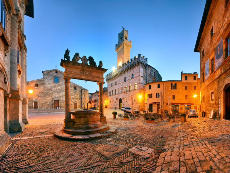 De lunch vindt plaats in Montepulciano, op het historische plein, met een exclusief moment: je mag de wagens midden op het plein parkeren en zo in volle glorie bewonderen — een lunch om bij weg te dromen.
